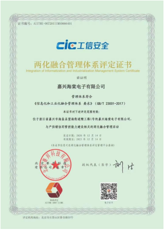 嘉興海棠電子已獲得兩化融合證書,生產(chǎn)流水線與品控管理通過數(shù)字化管理,實現(xiàn)產(chǎn)品可追溯,每一箱線纜可追溯到現(xiàn)場加工設(shè)備、操作人員和原材料的批號等,使生產(chǎn)質(zhì)檢每個關(guān)節(jié)都可以有序進(jìn)行。